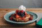 Triple stack buttermilk pancakes, house-made berry compote, fresh berries, maple syrup & vanilla ice-cream